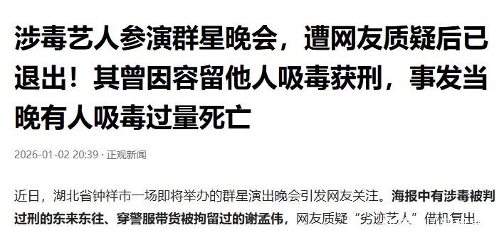 2. 跨年节点本应洋溢着喜庆与希望,各大演出纷至沓来,为公众营造节日氛围。然而在这片热闹背后,却悄然潜伏着一些试图借机翻身的争议人物,妄图依托节日高关注度实现低调复出。