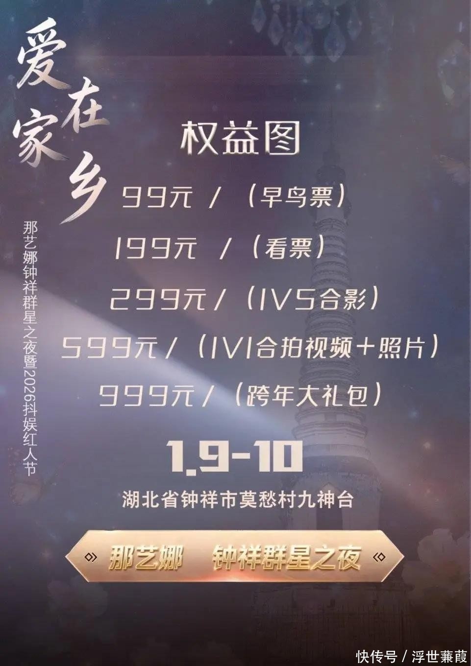 9. 湖北钟祥莫愁村亦顺势推出名为“爱在家乡·那艺娜钟祥群星之夜抖娱红人节”的主题活动,定档𱆍日日举行,主打“本土情怀+网红效应”概念,吸引了不少关注。